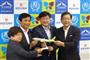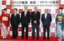 全日空が羽田-ニューヨーク線、羽田-シカゴ線を新規就航し、記念式典で鏡開きをする篠辺修社長(中央)ら=30日午前、羽田空港【拡大】