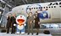 全日空が羽田-ニューヨーク線、羽田-シカゴ線を新規就航し、記念式典で鏡開きをする篠辺修社長(中央)ら=30日午前、羽田空港
