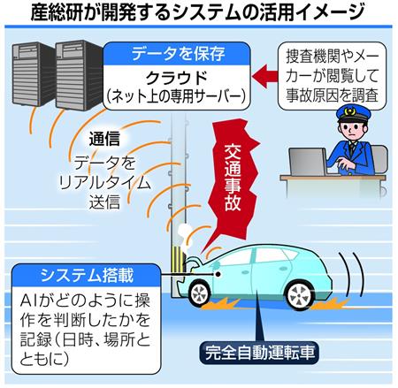 ドライバーの代わりに人工知能(AI)が操縦する「完全自動運転車」の実用化に向けて、AIがどのような判断で車を操作したのかを詳細に記録するシステムを産業技術総合研究所(産総研)などが開発していることが30日、分かった。2020年度にも完成させ、国内外の自動車メーカーに提供する方針。自動運転車が事故を起こした際の捜査や原因究明、再発防止に役立てる狙いだ。