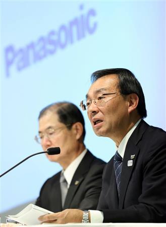 決算について記者会見するパナソニックの津賀一宏社長(右)=31日午後、東京都港区【拡大】