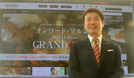 オンワードHDは22日、食を対象にしたネット通販サイト「オンワード・マルシェ」を立ち上げた。「コメ」「酒」など7分野で、全国7支店のバイヤーが自ら生産者の元に足を運んで発掘した約3000の商品を販売。生産者から消費者に届ける。購入額の1~5%を還元するポイント制度も導入。実質初年度となる2018年2月期に、10億円の取扱高を目指す。