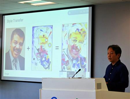 グーグルが開いた最新技術の説明会。画像編集技術は、人間の写真と有名な画家の画風を合成することもできる=2日、東京都港区(宇野貴文撮影)【拡大】