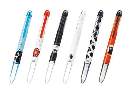 「熊本応援プロジェクト」として人気キャラクター「くまモン」のデザインをあしらった商品が登場。「ハイテックCコレト」は、自分で好きなレフィルを選んで装填できる多機能筆記具。本体ボディーにくまモンの笑顔とドット柄をあしらった「ウフフ ドット」、「FOR KUMAMOTO PROJECT」のロゴマークを入れた「あしあと ドット」、くまモンの色合いを表した「モノクロ」など6タイプのデザインを展開。価格は248円。専用ケース入りのレフィル10色セットは1350円。