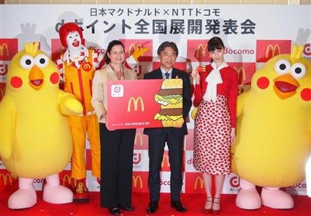ドコモの吉沢和弘社長は「現在のdポイント利用者は6000万人、マクドナルドを入れると加盟店は2万5300店となり、ますます便利にご利用いただける」と話した。日本マクドナルドのサラ・カサノバ社長兼最高経営責任者(CEO)は、業績が回復してきたことを強調。「ビジネスの強化という新たな段階に入る。これは大切な一歩だ」と述べた。