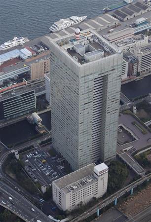 東芝本社ビル=17日午後、東京都港区(本社チャーターヘリから、桐原正道撮影)【拡大】