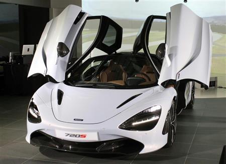 英高級車マクラーレン・オートモーティブは8日、新型スポーツ車「720S」を披露した。新開発の排気量4.0リットルのV型8気筒ツインターボエンジンを搭載し、最高出力は720馬力。停止状態から100キロまで2.9秒で加速する。車体に軽量で剛性が高い炭素繊維を採用し、車重は1283キログラムに抑えた。