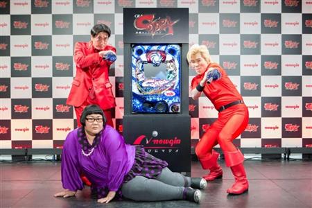 発表会には、お笑いコンビ「メイプル超合金」が登場。原作ファンのカズレーザーさんは、コブラの衣装に身を包み「とても素晴らしい台ですが、精密機械ですので、台をたたかないでください」とアピール。相方の安藤なつさんが「コブラを知らない方も、初心者の方も、絶対楽しい台なのでぜひとも遊んでください」とフォローした。