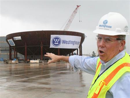 建設中の新型原子炉を説明するウェスチングハウスの担当者=2013年、米ジョージア州のボーグル原発(吉村英輝撮影)【拡大】