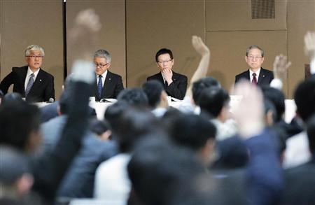 東芝が銀行団に対して説明会を開くのは、昨年12月に米原発子会社での巨額損失が発覚して以降、3回目。主力取引銀行の三井住友、みずほ、三井住友信託は引き続き支援する方向だが、返済期限が来た融資については更新しない方針を固めた地銀も出てきている。