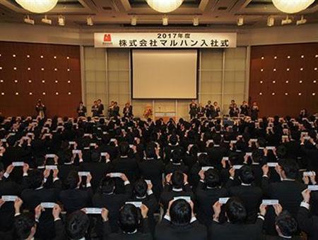マルハンの入社式。297人が遊技業界の扉をたたいた=東京都文京区【拡大】