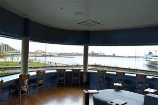 スターバックスコーヒージャパン(東京)のデザイナー及川和茂さん(35)は「昼は明るい海、夜は町の夜景と、どの席に座っても景色を楽しめる魅力的な店」とアピールした。