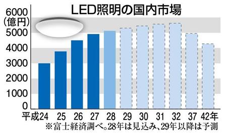 東日本大震災後の省エネ意識の高まりや電気料金の上昇を背景に急成長したLED照明の市場が、曲がり角を迎えている。需要が一巡した上に、長寿命というメリットがあだとなって買い替え需要の伸びも見込めないのだ。メーカー各社は独自のサービスや商品展開で、成長力を取り戻そうと躍起になっている。(板東和正)