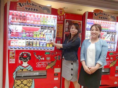 自販機は昭文社の訪日外国人向け観光アプリ「DiGJAPAN!」とタイアップした。日本各地の観光スポットを紹介する専用ソフトを事前にスマートフォンにダウンロードしておくと、自販機に表示されたQEコードを読み込むだけで、周辺の観光情報にアクセスできる。また、「Wi-Fi(ワイファイ)」スポットしても活用できる。