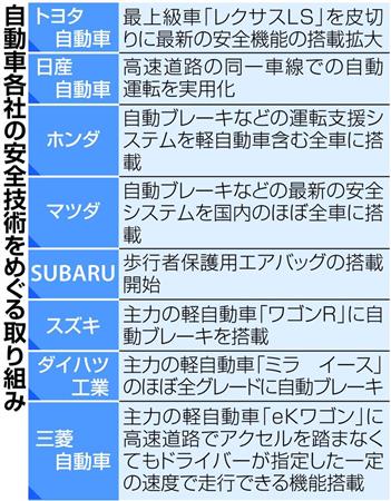 高齢者の事故が社会問題となる中、自動車各社が安全機能の強化を急いでいる。政府も安全運転サポート車の普及に乗り出しており、2020年頃をめどに開発競争が進む自動運転車の基幹技術となる。「セーフティードライブ」の実現に向けた官民の取り組みや課題を検証する。
