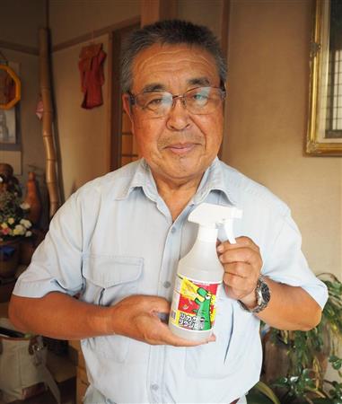 特許出願したヤマビル凝固剤「ツカサダウンヒル」を手にする中里司さん【拡大】