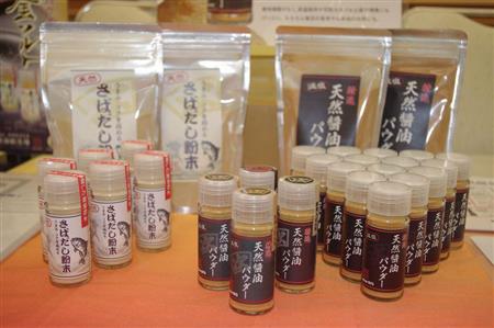 価格は天然醤油パウダー、さばだし粉末とも1本20グラム入りで540円。問い合わせは同社((電)0776・22・2001)。