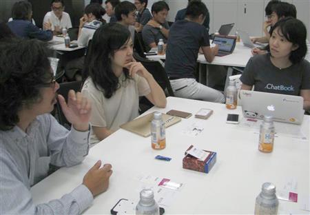 報告会には、ベンチャーキャピタル(VC)や大手企業の新規事業の担当者ら約60人が集まった。8人の起業家がそれぞれ8分間で会社概要や開発中の自社製品・サービス、事業の方向性などについて説明。その後、企業の新規事業の担当者が座るテーブルを訪れ、質問に応じていた。