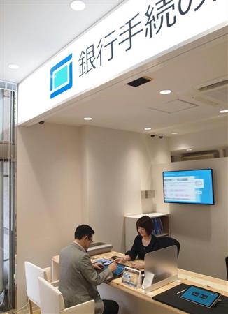 地方銀行25行の手続きができる「銀行手続の窓口」。新宿郵便局の一角に設けられ、地銀との良好な関係を象徴する=26日、東京都新宿区【拡大】