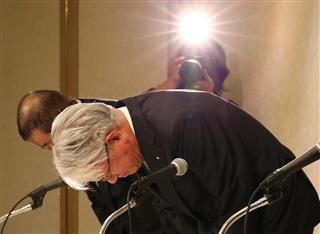 川崎会長兼社長が東京都内で記者会見し、「顧客(取引先)と消費者に多大なご迷惑をお掛けし、改めておわび申し上げる」と陳謝。前日の説明と食い違った点について「現在実施している調査とは別に見つかっていたもの」と苦しい釈明に終始した。