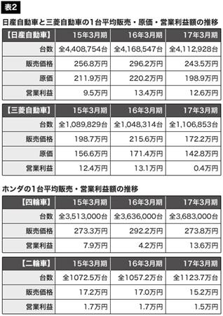 ただし、日産の連結決算上の販売台数そのものは、400万台前半での推移。ホンダはさらに下回る300万台半ばである。