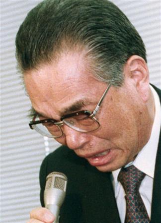 1997年11月、自主廃業発表の会見で涙を見せる山一証券の野沢正平社長=東京・日本橋兜町の東京証券取引所【拡大】