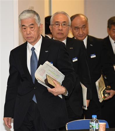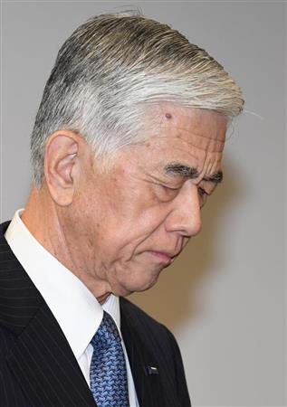 東レハイブリッドコードが製品検査データの書き換えを行った件で会見する東レの日覚昭広社長=28日午前、東京都中央区(寺河内美奈撮影)【拡大】