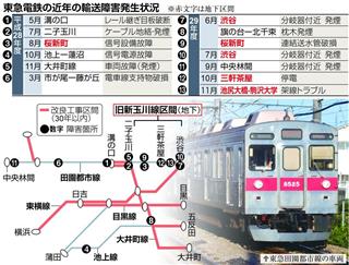 東急電鉄田園都市線で11月15日に起きた架線トラブルは、朝の通勤ラッシュ時間帯を約4時間半にわたり直撃し、沿線住民ら約12万6千人の足に影響した。10月19日朝にも三軒茶屋駅で停電が発生したばかりだった。開業して40年がたつ現場の地下区間では昨年度から13件のトラブルが続発している。「沿線の高級感と安全性というブランドイメージにあぐらをかいていた」(同社幹部)と反省の弁も聞こえる。東急が誇る「安全路線」で一体何が起きているのか。そして、今日の田園都市線での通勤・通学は大丈夫か。(市岡豊大)
