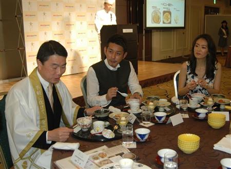 15日に開かれた試食会では、ゲストのサッカーJリーグ・ベガルタ仙台の元選手、千葉直樹さん、モデルの葛岡碧(みどり)さん夫妻がおにぎりを味わい、「かめばかむほど甘みが広がる」などと感想を述べた。