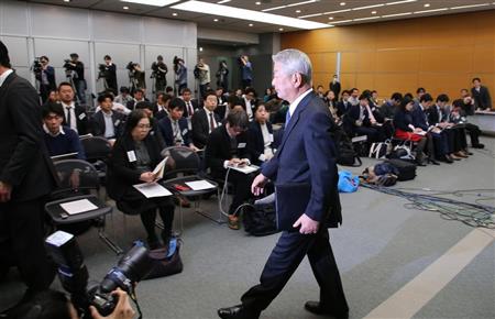 注目される談合疑惑への具体的なコメントはなく、報道陣の質問は、次期社長となる蓮輪賢治専務執行役員に対し、今後のかじ取りの方向性を問うものへと移った。記者会見は、開始後1時間8分で終了した。