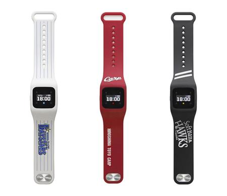 腕時計型端末「ファンバンド」は無線通信でスマートフォンとつないで利用する。スコアや各打席の対戦状況をリアルタイムでディスプレーに表示するほか、スタジアムと臨場感を共有するためピンチやチャンスになると振動や発光ダイオード(LED)の光で通知してくれる。球団や選手のニュースを配信するサービスもあり、オフシーズンも楽しめる。