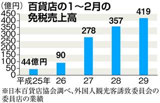 百貨店売上高の一進一退が続く中でも、化粧品は訪日客需要の後押しで33カ月連続の右肩上がりだけに、各社の期待感は強い。そごう・西武は免税窓口のスタッフを増やして手続き時間の短縮を図る。ドラッグストアも、マツモトキヨシホールディングス(HD)やウエルシアHDが一部店舗で24時間営業し、夜の買い物需要を取り込む。