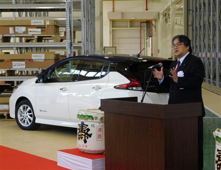 また、5月から始める有償交換プログラムでは、新品なら65万円の容量の電池を、30万円で提供。劣化が進んだ電池パックは、電動フォークリフトや工場電源バックアップ設備などに転用する。日産の坂本秀行副社長は「ここでつくった仕事のやり方を、世界中が見習っていくことになる」と強調した。