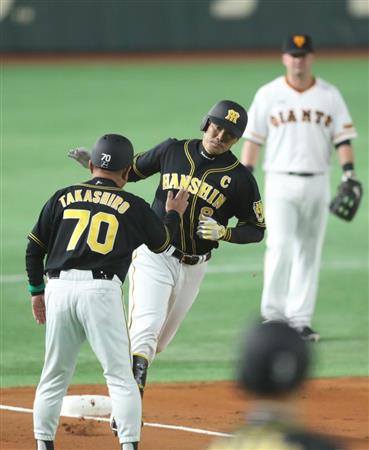 巨人対阪神の開幕戦で先制ソロ本塁打を放った阪神・福留孝介(中央)=3月30日、東京ドーム【拡大】