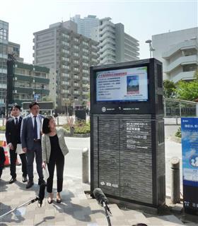 パナソニックと東京電力による配電箱に設置した電子看板の実証実験=東京都港区【拡大】