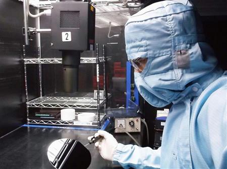 シリコンテクノロジーの工場で製品を検査する従業員=長野県佐久市【拡大】