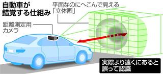 自動車に搭載されている距離測定用のカメラが、立体的に見える特殊な画像で「錯覚」を起こす可能性のあることが横浜国立大の研究で分かった。悪用されると衝突事故につながる恐れがあり、自動運転車などの新たなリスクとして対策を考える必要がありそうだ。