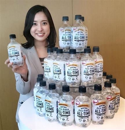 サントリービールが発売するペットボトル入り透明なノンアルコールビール「オールフリーオールタイム」=8日、東京都港区(平尾孝撮影)【拡大】