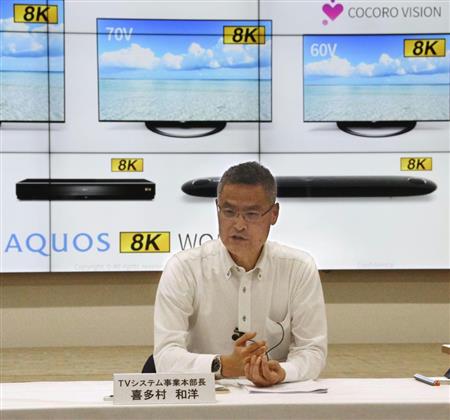 シャープは16日、超高精細な「8K」放送の対応チューナーを内蔵した「アクオス」ブランドの液晶テレビを秋ごろに発売すると発表した。現行の地上デジタル放送より高画質な「4K」「8K」の衛星放送の12月開始に向け、市場の盛り上げを図る。得意の液晶技術を活用し、次世代テレビの販売競争でソニーやパナソニックなど「有機EL」陣営に対抗する。