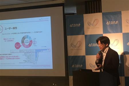 後払い方式の新しいQRコード決済サービスを発表するネットプロテクションズの柴田紳社長=24日、東京都港区【拡大】