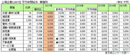調査は2017年決算(1月~12月)の全証券取引所の上場企業を対象に有価証券報告書で平均年間給与(以下、平均給与)を抽出した。対象は、2011年から2017年決算まで連続比較が可能な2681社(持株会社、変則決算企業は除く)。