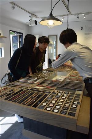 東京・吉祥寺にあるノットのギャラリーショップ。明るい日差しが差し込む店内には腕時計の本体が50種類以上、革や布、金属などさまざまな素材のベルトが90種類以上並ぶ。来店客はそれぞれを自由に手にとることができ、組み合わせを試しながら友人らと会話を弾ませる。