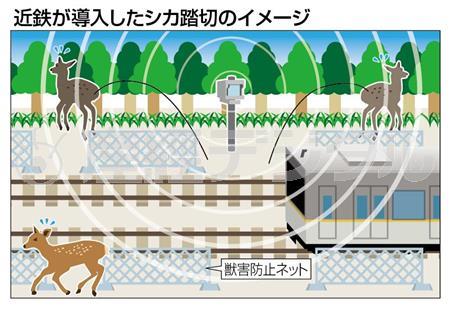 シカと電車の接触事故を減らそうと、近畿日本鉄道が導入した「シカ踏切」が絶大な効果を発揮している。運行時間帯はシカが嫌がる超音波で線路から遠ざけ、終電から始発までの夜間はそれを止め、自由に線路を横切れるようにするという画期的なシステム。奈良、三重両県の大阪線の一部に設置したところ事故件数が激減し、他の鉄道会社も試験導入を始めた。野生動物を排除するのではなく、人間との共存を目指す-。導入に至ったきっかけは、一人の鉄道マンがひらめいた「逆転の発想」だった。(藤木祥平)