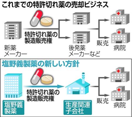 しかし、政府の薬価制度の抜本改革で、特許切れ薬の価格がさらに引き下げられる方針が示されたことから、売り上げなどの面で後発薬メーカーとの折り合いがつかず、売却も難しくなることが予想され、塩野義は今後、グループ内の生産関連子会社に移管することで効率よく販売する。