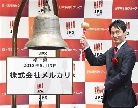 フリーマーケットアプリ国内最大手のメルカリが19日、東京証券取引所の新興企業向けマザーズ市場に上場した。終値は5300円。発行済み株式総数を掛け合わせた時価総額は7172億円で、今年の国内上場企業で最大となった。同じく新興企業が多く上場するジャスダック市場の日本マクドナルドホールディングスの7951億円に次ぐ規模。