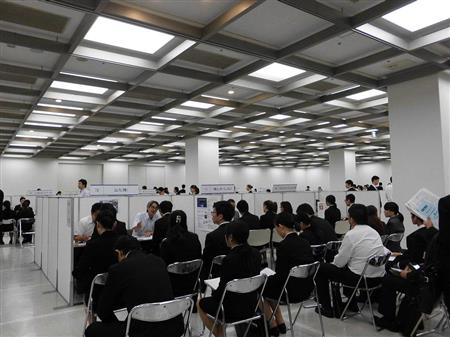 会場はごった返し、人気のブースでは用意した椅子に座れなかった留学生が立ったまま、担当者の日本語による説明を熱心に聞きながらメモしたり、質問したりしていた。日本語の理解度を試す狙いもあるが、留学生は苦にしていない。鉄鋼に強みを持つ商社、阪和興業人事部の三井悠大郎氏は「1人でどんどん市場を開拓する社風に外国人は合うので採用したい。中国人や韓国人に加え、(南米など)新たな市場開拓先が母国語とするポルトガル語を話せる学生が欲しい」と意気込む。参加企業の担当者から「日本人より就労意欲が高い」との声も聞こえた。