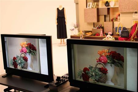 4Kカメラで撮影した映像(左)と、現行カメラで撮影した映像(右)=千葉市美浜区、QVCジャパン(三宅令撮影)【拡大】