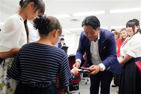その後、別室に用意された懇親会場では国師康平社長の出迎えを受け、ビールやソフトドリンク、たこ焼きなどが振る舞われた。ファミリーデーは今春入社の新入社員13人が企画。朝7時から準備に取りかかり、子供たちが飽きないようにと、スーパーボールすくいや塗り絵といったアトラクションコーナーも用意した。田中雄一郎・企画本部担当取締役は「6年前に入社した頃は独身者ばかりだったのに、従業員にも家族ができて、何か対応すべきだと考えた」とファミリーデーを企画した背景を説明する。