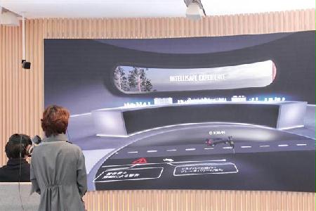 「ボルボスタジオ青山」のVRコーナーでは、目の前に広がる大画面で運転支援機能などを疑似体験できる=東京都港区(ボルボ・カー・ジャパン提供)【拡大】