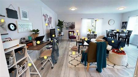 仮想アパートには「寝室」「ダイニングルーム」「リビングルーム」「キッチン」「オフィス」「子供部屋」「バスルーム」「パティオ」があり、各部屋に合った家具や雑貨が配置され、購入可能なものには黄色い二重丸の印がついている。たとえばキッチンなら、トースター、まな板、コーヒーメーカーなどが購入できるようになっている。