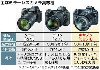 両社に対しては「ミラーレスへ軸足を移すのでは」との見方も広がる。それだけにキヤノンは、一眼レフ愛好家へ向けた既存規格レンズの新製品を「EOS R」と同時発表。ニコンの牛田一雄社長も「一眼ファンは根強い」と強調する。